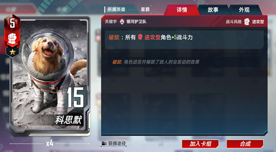 科思默具有不俗的初始战力,在整个漫威对决的游戏中也算是一流的初始战力。再加上银河护卫队的各种武器以及各种技能都可以让它成为一个战力十足的单位。此外他的附加效果可以让整个队伍获得收益。可以做纯红进攻体系的核心,也可以帮助银河护卫队的其他角色更容易实现破敌效果。