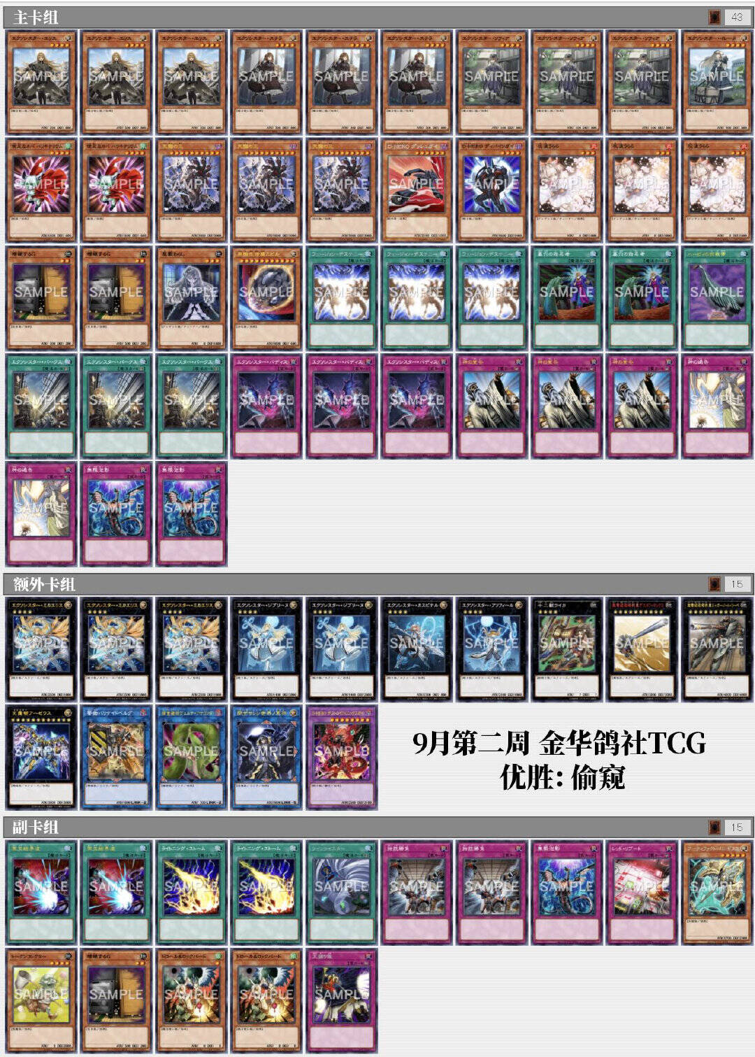 为了便于统计,上期OCG积分赛统计的8月第五周视为9月第一周,本期记录的9月第2、3周为9月6日-9月20日间公认店铺赛的冠军卡组。