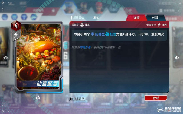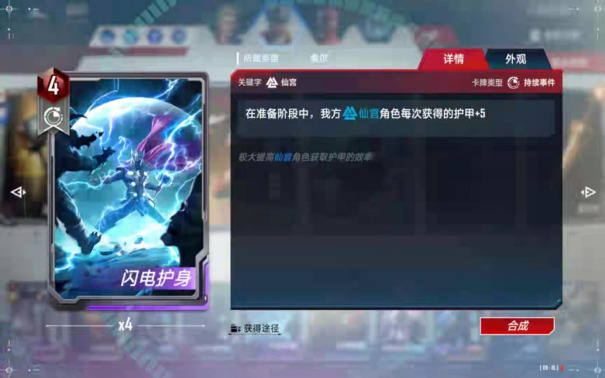 4、利用闪电护身的持续事件卡,然后用简、苏睿、仙宫盛宴等buff牌给索尔加大量的护甲,让索尔成为对手打不动的存在。