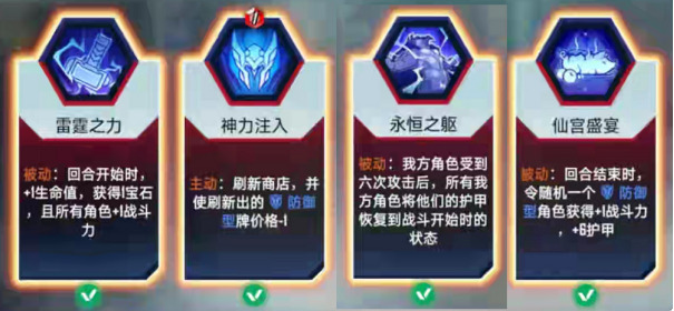 (1)升级到五级商店后,如果剩余宝石超过6个,或者拿到了“神力注入”或者“蛛网战士”技能,则选择刷新一次商店,并且只刷新一次商店,拿商店的最高战力,运气好的话,拿到美队或者绿浩克,大概率可以锁血。