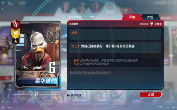 4、本卡组携带了两张援军角色,中期的时候尽量要打出,可以无偿滤牌库,霍华德鸭可以白赚1宝石;