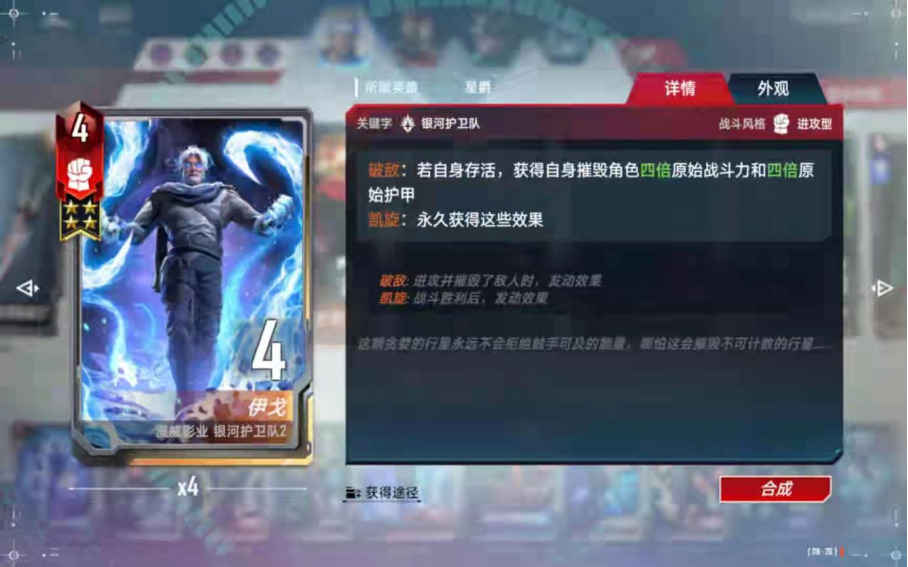 注意:伊戈身材起来了以后,如果场上有星爵,就可以考虑放弃吃友斧,换装甲能量剑、暴击弓等任意武器。不然吃掉星爵就得不偿失了。