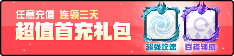 ① 新手首充礼包。充值消费任意金额,首日立即领取「传说级台风方块x1」,二段变身极限攻速,非常适合新手使用的输出型方块。次日及三日登录,可额外领取「铂金宝箱x1、钻石x100、金币x5000」!