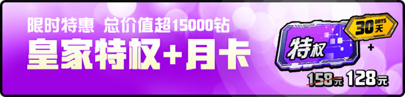 特权礼包「皇家特权+月卡x30天」上线专属折扣仅售¥128,礼包内容包含: