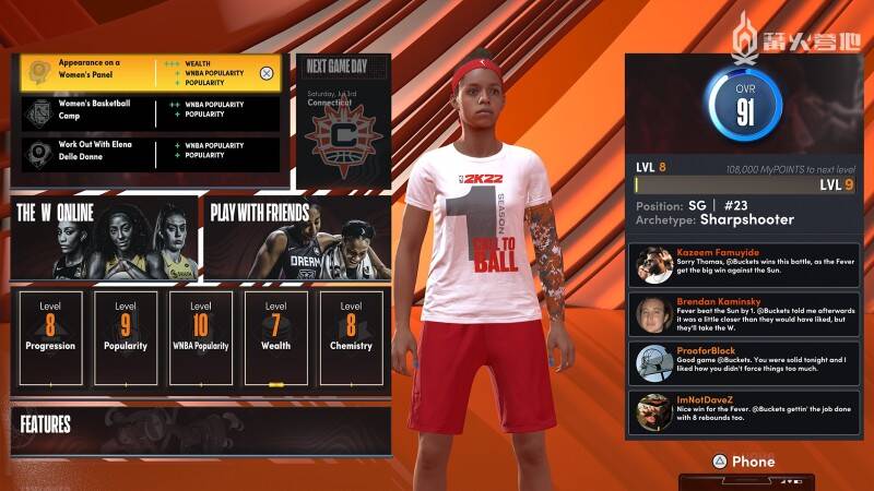 玩家只能以男性「自创球员」的身份进入「篮球之城」,这让人挺失望的。但是,如果你想闯荡 WNBA 的话,《NBA 2K22》确实带回了「女篮生涯」模式。