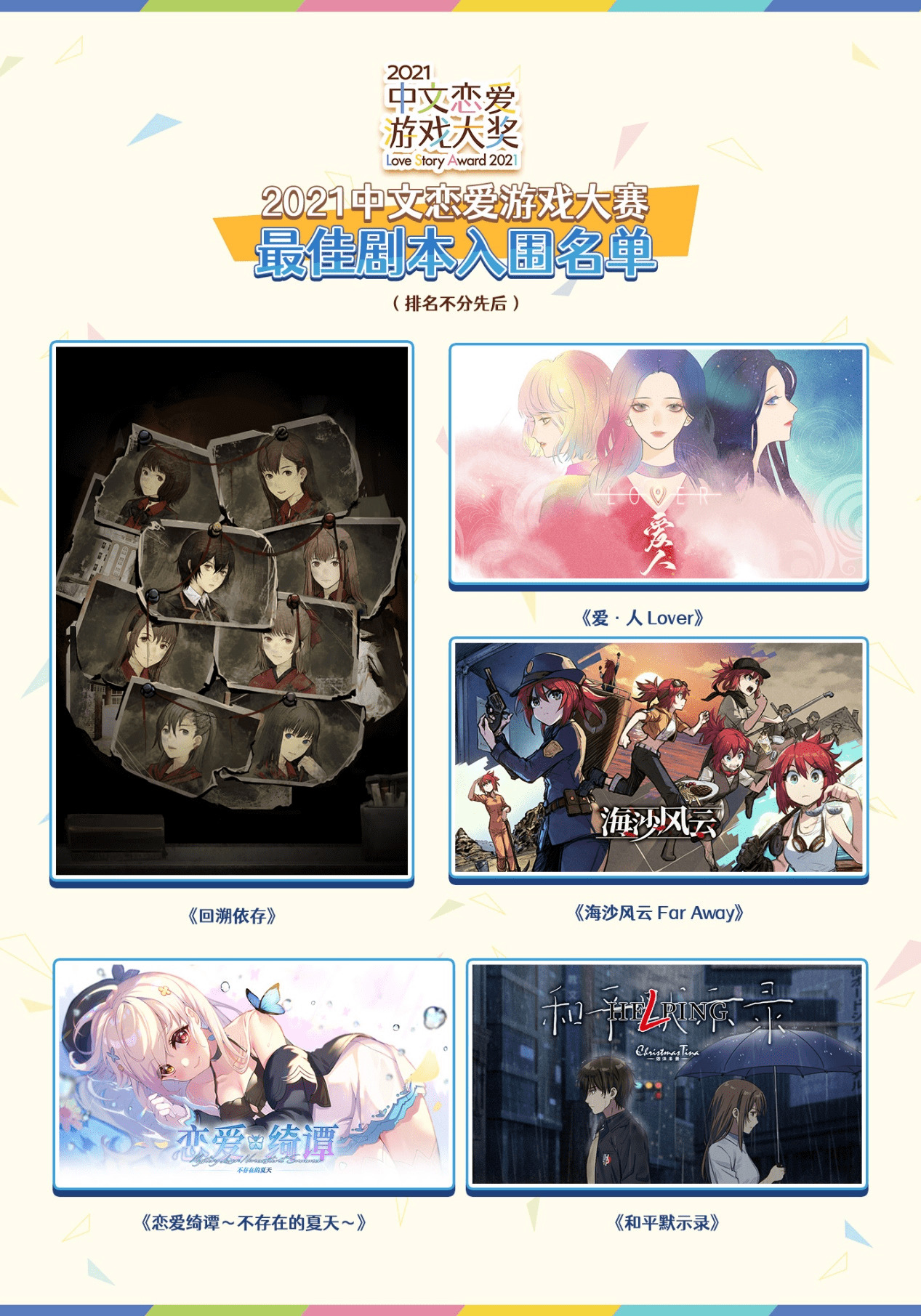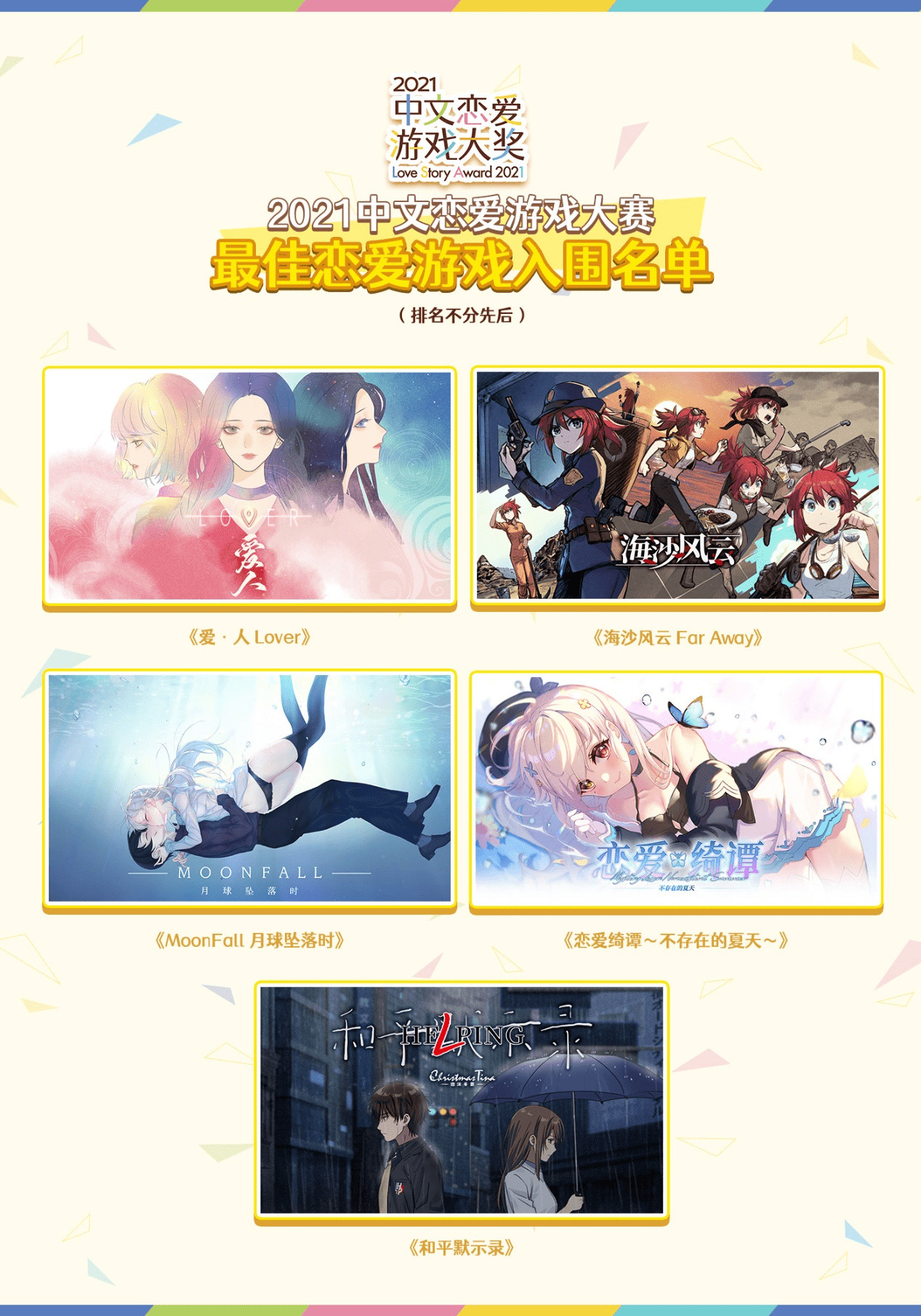 以下便是2021恋爱游戏大赛各奖项的入围名单(排名不分先后):