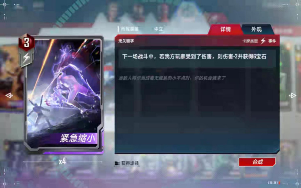 紧急缩小这张卡对本卡组非常重要,因为本卡组是直接升级到六本的打法,中期全靠紧急缩小苟且。只要能苟且到六级大身材随从出来,基本就无敌了。