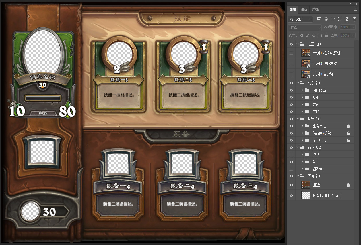 您可以充分发挥您的想象力与设计头脑,使用该模板进行随心所欲的设计、制作您心目中的佣兵。他们可以来自魔兽世界、守望先锋、星际争霸、甚至糖果缤纷乐、口袋妖怪以及更多......!您可以制作出拥有三个召唤技能的佣兵、拥有三种不同身份技能的佣兵、拥有全新法术派系配合的佣兵等等疯狂的、有趣的设计!