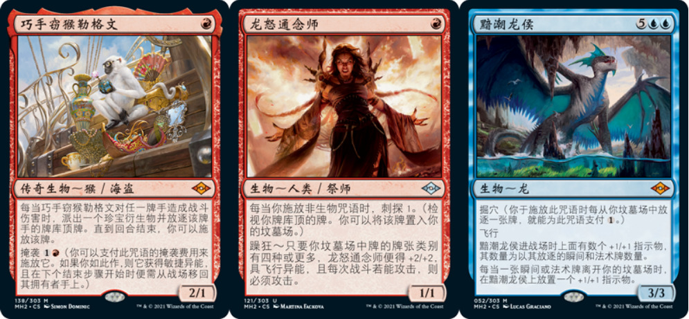 大家好,在6月份专注于斯翠海文锦标赛的标准和史记之后,随着摩登新篇2的发布,我很高兴回到我最喜欢的薪传赛制。跟随潮流,我首先玩的是红蓝掘密师,这套牌包括MH2的强大生物巧手窃猴勒格文, 龙怒通念师和黯潮龙侯。