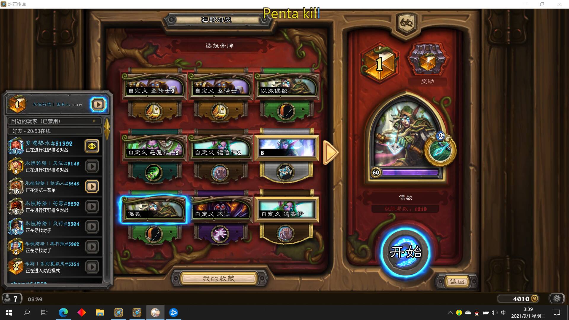 玩偶数猎一定要计算好伤害量,术士的抗性牌很多,算不好不好赢。