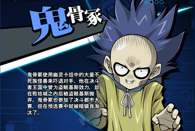 鬼骨冢在原作中是只登场了2次的凑数角色,主要使用不死族,是初代动漫中不死族的代表角色。