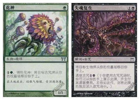 有了这两张牌,你就可以用通联古咒给失魂复生然后捞花神的手段,重复施放古咒。这个版本还不是最好的,你还可以混白加入虚相迷雾(也就是浓雾),这样就可以锁住生物套的攻势,不过差距也不大。