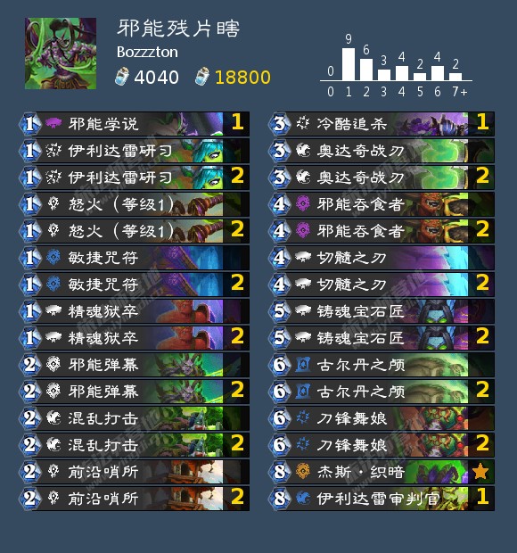 这里也在附上bozzzton的邪能残片瞎,不过他0-2了,见不到这套牌的表现了。