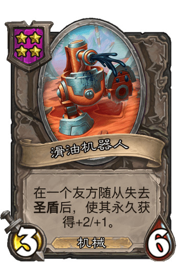 机杂在这个版本得到了极大加强,拥有后期6本核心欧米茄破坏者,能群体加buff能给偏折机器人补圣盾,5本机鱼圣者(机械峰哥),4本圣盾大核滑油机器人,以及中期打工无敌的步行坦克。机杂受欢迎的原因就是对英雄适性完全没有要求,任何英雄只要情况不对,就可以拿偏折机器人高本机械圣盾随从开始玩机杂。当然,机杂的核心还是能补盾的偏折机器人比较强,能补盾这个特效无论是前期还是后期都很有用,而且偏折机器人失去圣盾可以给机械峰哥补盾,更契合机械流,当前版本机械发育主要靠滑油机器人,滑油机器人的特效是在一个随从失去圣盾后加2攻1血,加的已经很多了,用到后期虽然可能比不上其他流派的各种大核,但是4本机械足够出色了,然后用吵吵模组给机械贴圣盾就能让这个机械自动发育 ,实在是太强了,强烈建议站两个或者直接点金或者一直搜金的再上5本,当然可以上5本对6对出欧米茄破坏者也能加强不少场面,欧米茄破坏者的效果,是亡语召唤6个微型机器人,没有一个微型机器人因为格子不够被挤掉就全体机械加5加5,如果没有亡语机械可以用鹦鹉配合,而鹦鹉可以用新野兽增强核唤生响尾蛇贴复生,配合瑞文戴尔男爵这也是一个非常强大的机械狼爹流。机械峰哥强还是很强,能补盾就是很强,但是因为不太好养,又不能贴剧毒,贴吵吵模组带嘲讽会带嘲讽被风怒血克势力很难过发挥,但是也不能忽视机械峰哥的强大实力,双峰哥无限补盾的可能性还是存在的,奥秘哥的奥秘残魂裂像配合贴了模组的峰哥和卡德加做出峰哥无限配合补盾还是能做出来的。步行坦克是非常强势的打工随从,复仇2很好触发,一触发就打对面血量最高的随从6血,不会打到残血小随从上非常稳定,中期很容易就能稳定战力,稳血必拿。