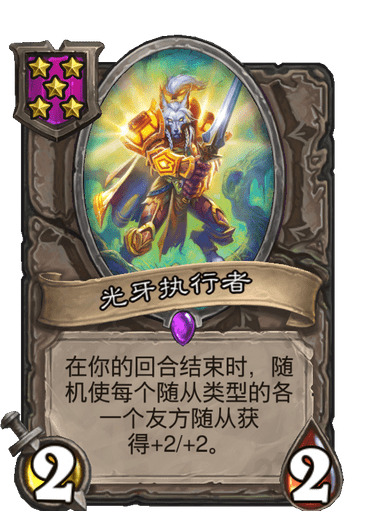 英雄技能:定罪:等级1随机使一个友方随从加1加1(酒馆等级3升级)定罪:等级2随机使3个友方随从加1加1(酒馆等级5时升级)定罪:等级3随机使5个友方随从加1加1
