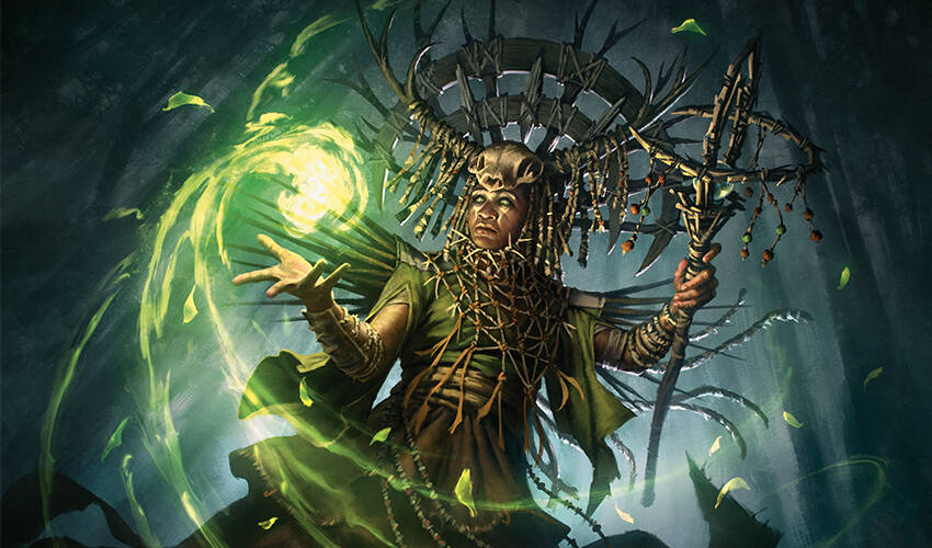 女巫用手杖触碰雄鹿的头。从那里长出了一顶由树枝与花朵构成的皇冠。"正好有个为了这个目的的仪式。"