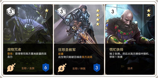 3法力:腐物咒者*3,狂怒圣教军*3,慌忙抉择*3(法术)