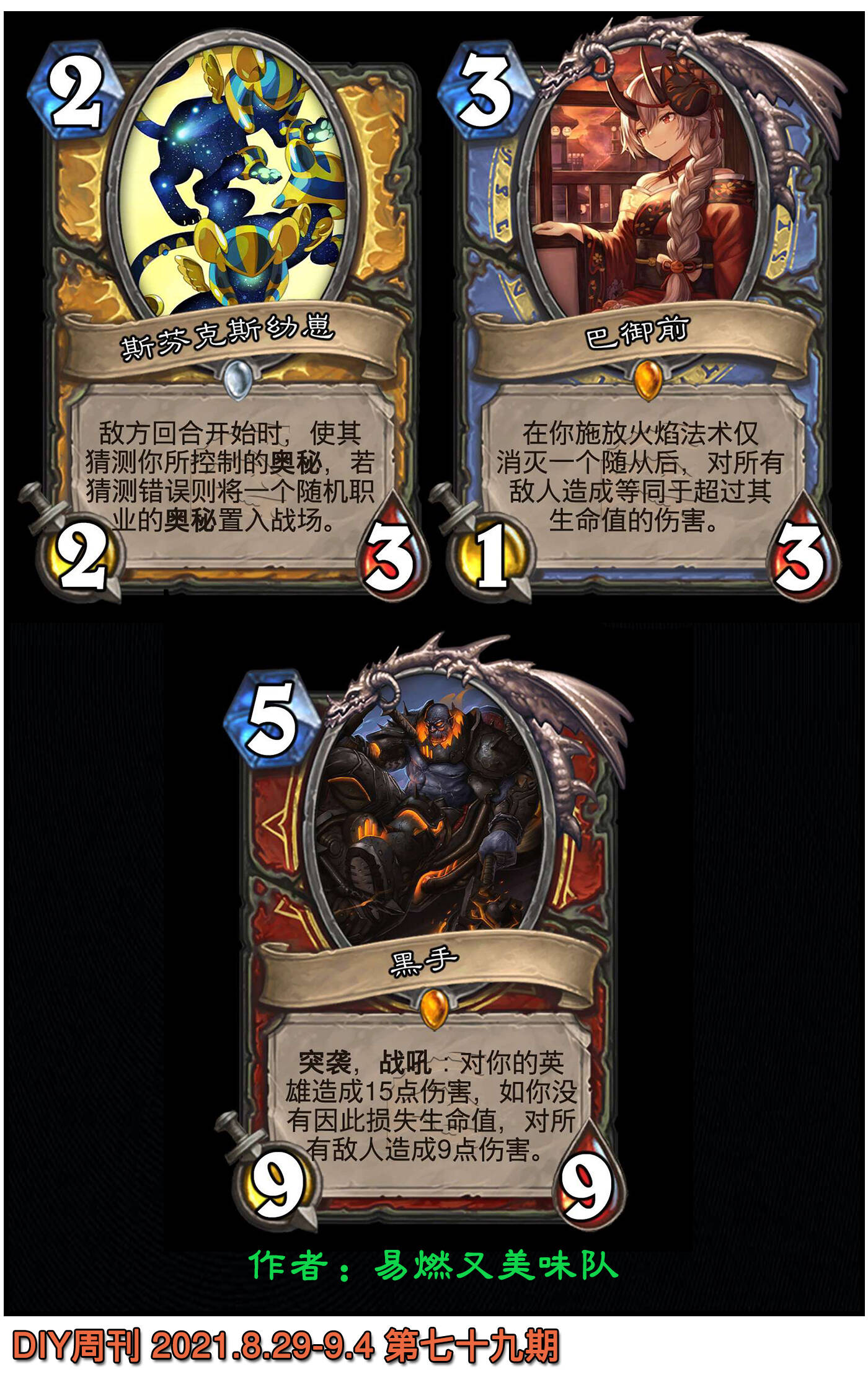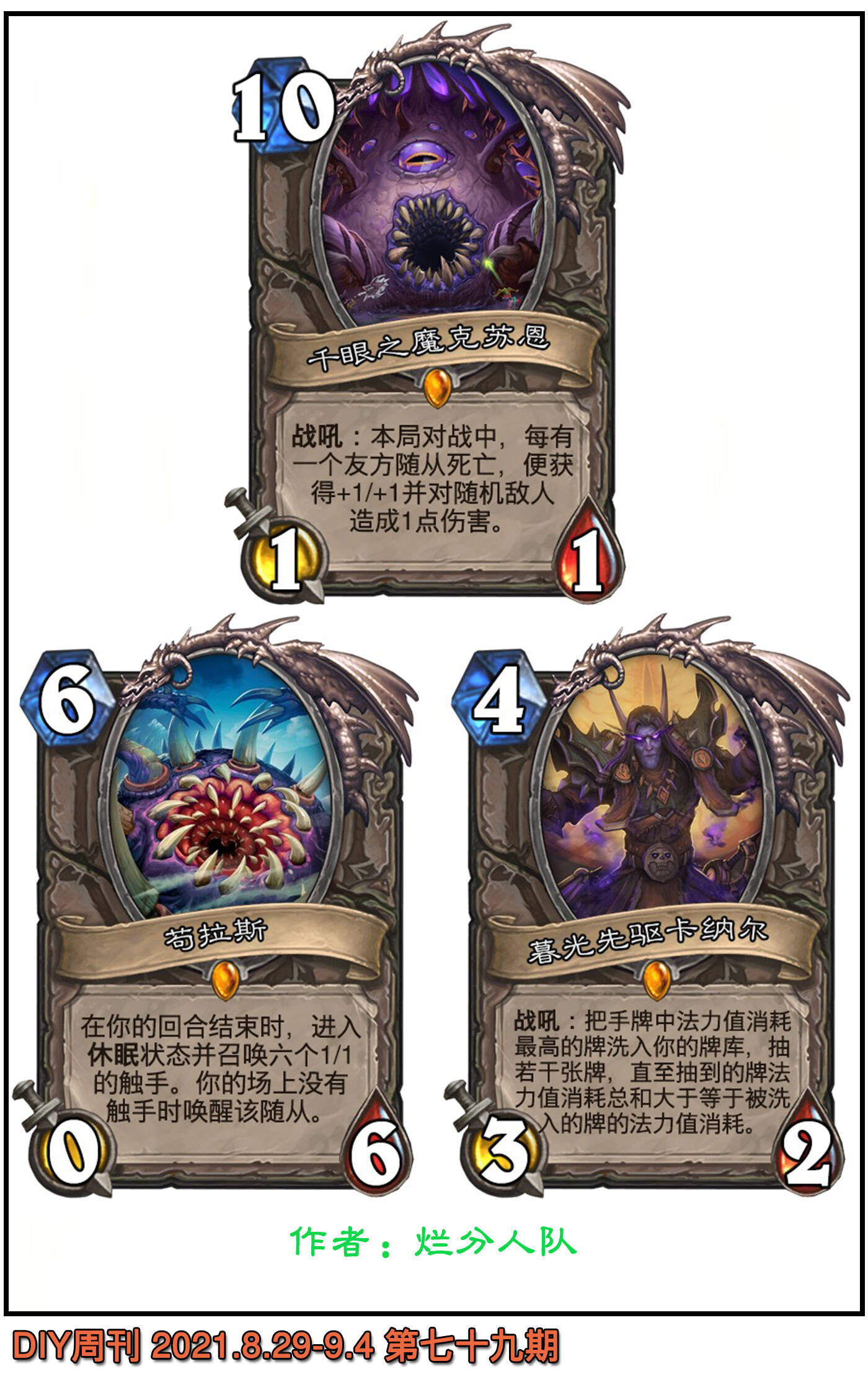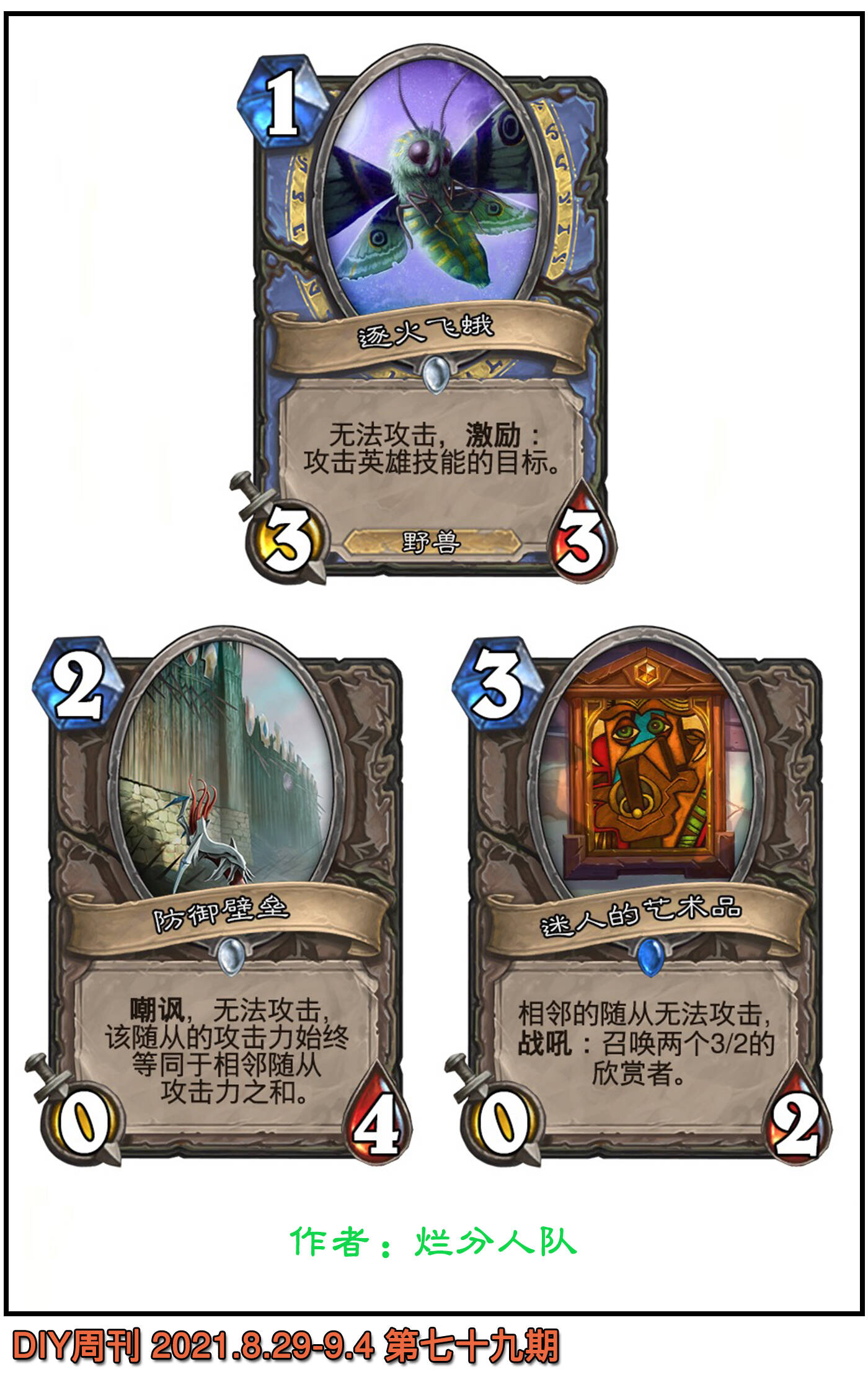 【要求】选择一个没有卡牌描述的随从,围绕它设计一到三张牌。