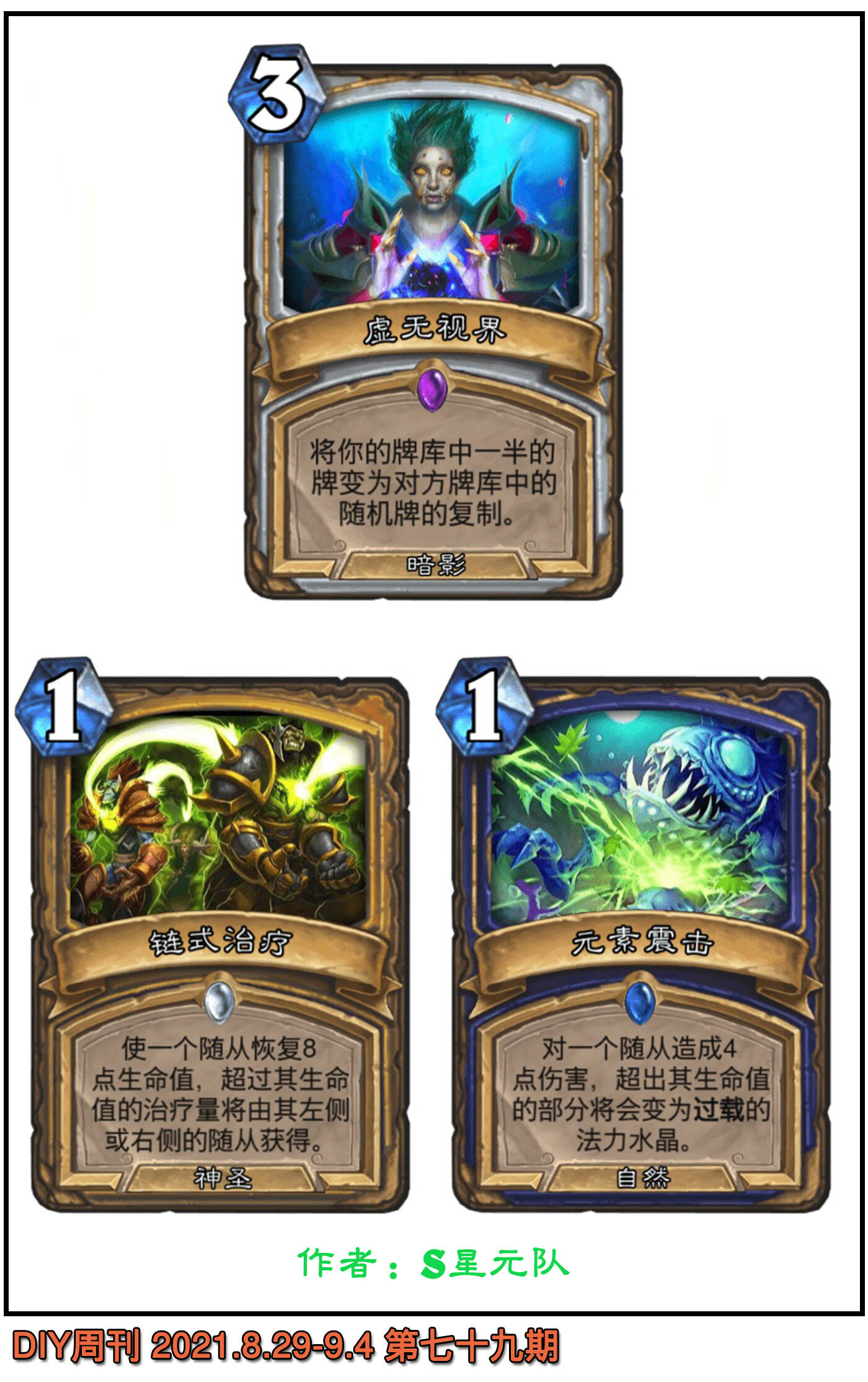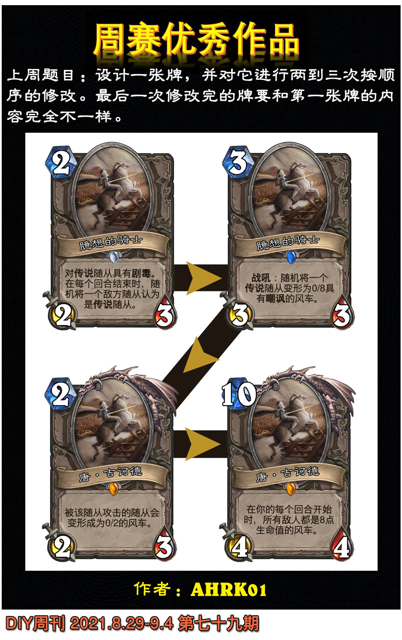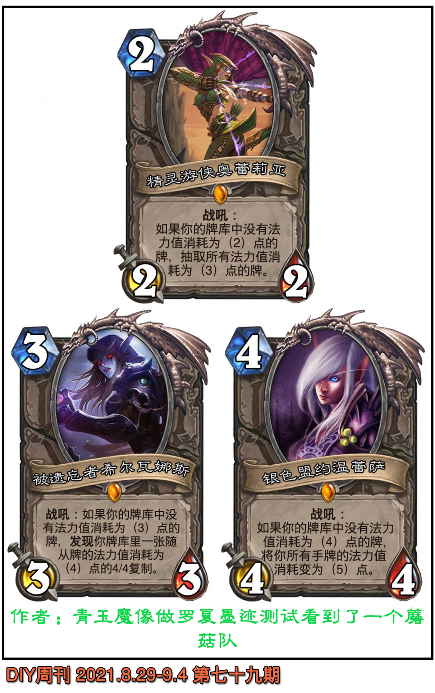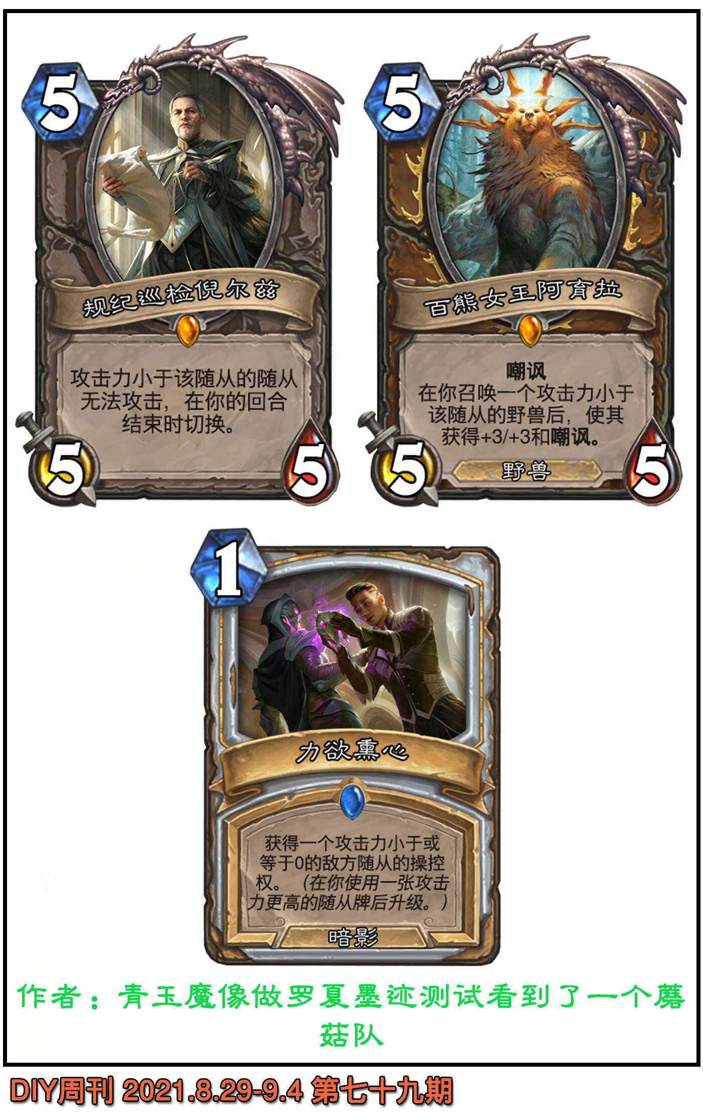 【要求】选择一个没有卡牌描述的随从,围绕它设计一到三张牌。