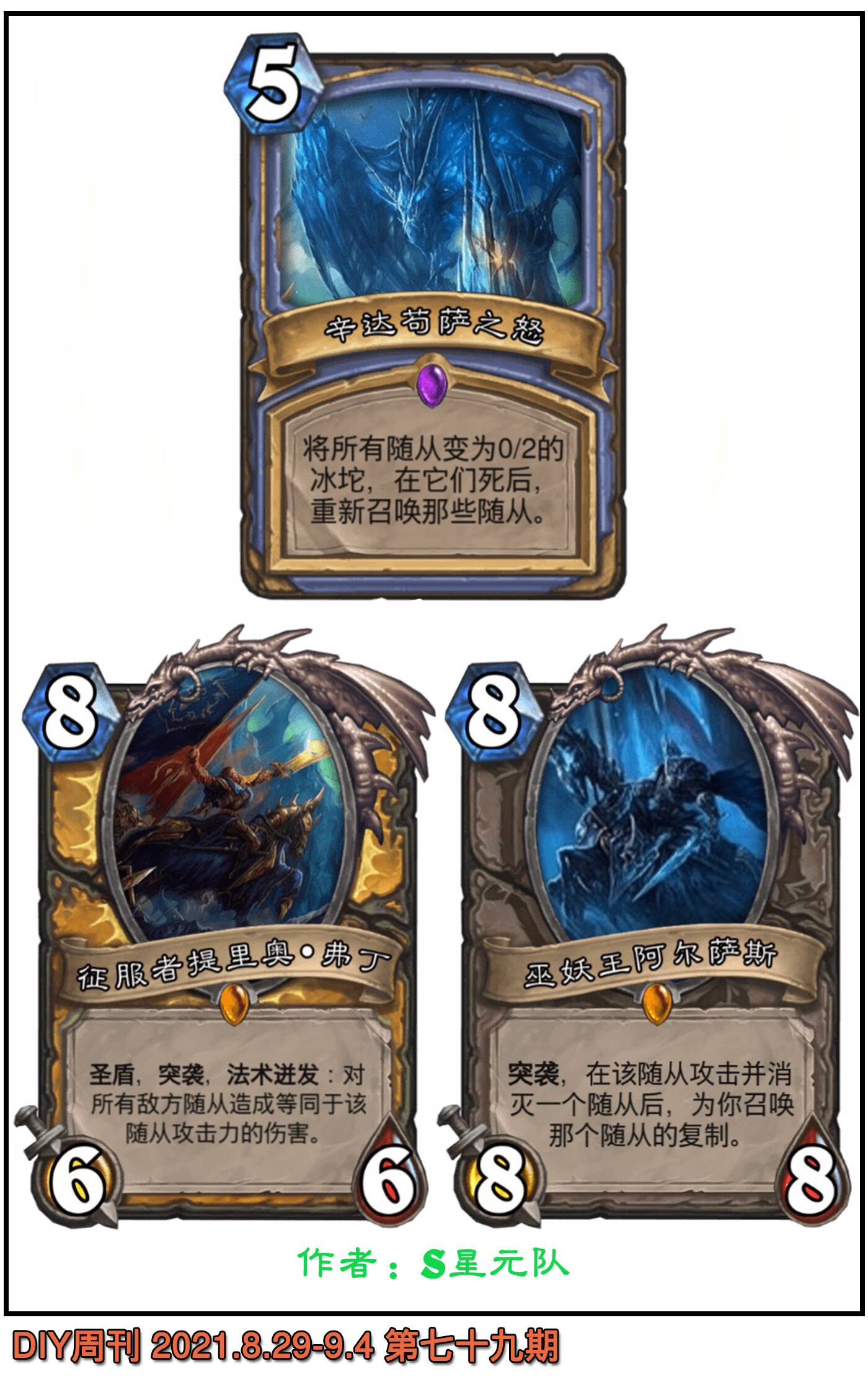 辛达苟萨之怒游戏体验极其糟糕,如果是我来做可能会处理成变形成为0/1的勇士,亡语将原本的随从置入手牌,不过强度还需要斟酌,因为冰块没嘲讽,对于没buff和aoe的职业卡死战场就直接游戏结束了。弗丁和阿尔萨斯是截稿前两分钟做完的吗?