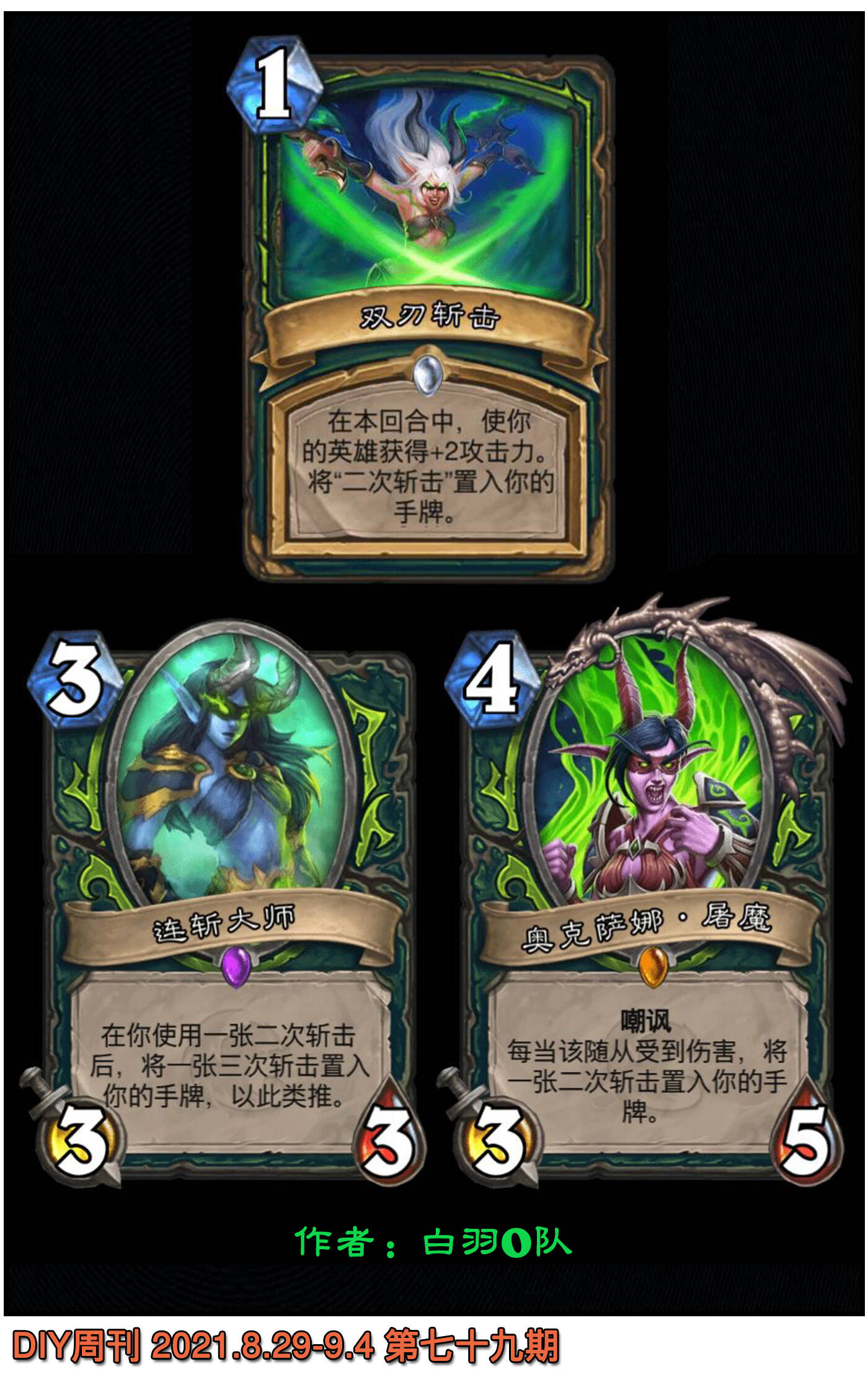 为一个职业设计三张牌,他们需要与英雄技能的效果产生联动。(例如:血肉巨人,火眼莫德雷斯)