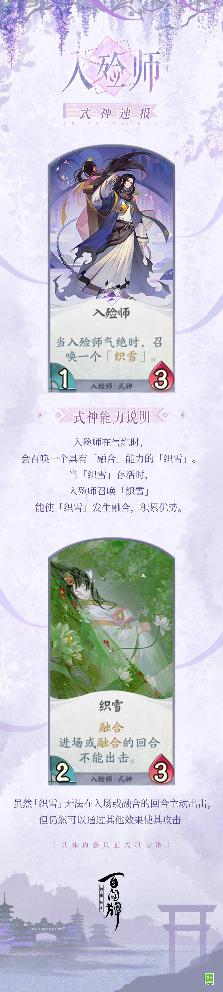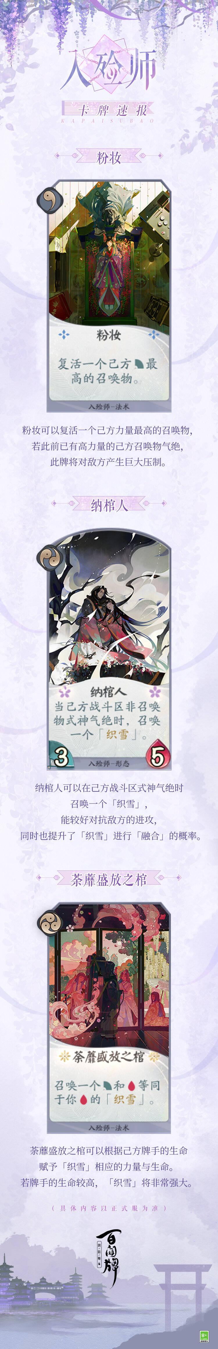入殓师式神与卡牌情报奉上,更多有关新机制的说明,还请客人持续关注藤姬的后续动态~↓↓