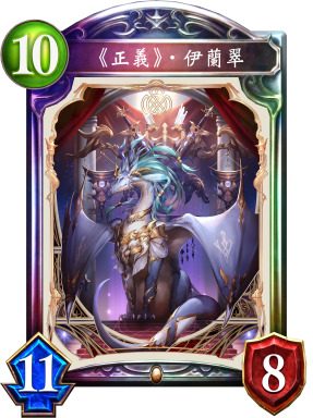 正义·伊兰翠同样可以作为禁忌的融合素材。她还能在被庭园减费后登场,在有进化点的情况下稳定打出8点斩杀,或在需要赌上限的情况下提供过牌、护脸、回血的可能性。