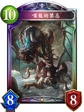 龙之启示、龙之嗔怒可以在前期跳费,帮助庭园龙尽快抵达关键的5费(使用庭园)和7费(用聚龙之唤抽取2张佐伊,并在当回合使用其中一张)。噬龙的禁忌也能通过融合高效跳费,并能在场上有庭园的情况下高效过牌。为了支持禁忌,同时提升庭园的效率,这套牌投入了20张7费以上牌,其中独步古今的大拳豪·刚特克泽、原始之龙·巴哈姆特和正义·伊兰翠能打出空场斩杀,配合佐伊取胜;而南瓜龙和轮回的女神则拥有实用的激奏能力,可以在未被庭园减费也未抽到禁忌的情况下依然发挥价值。