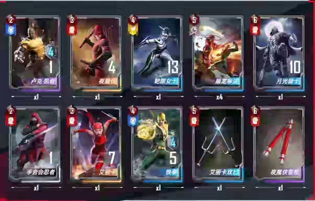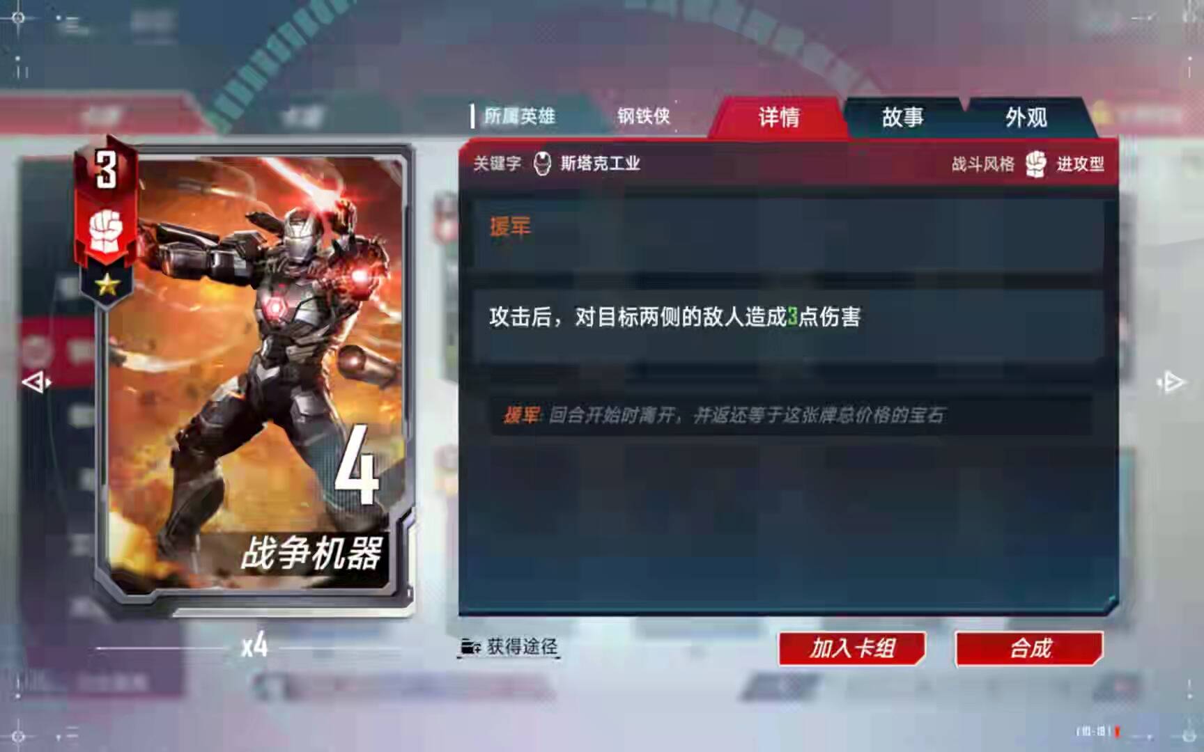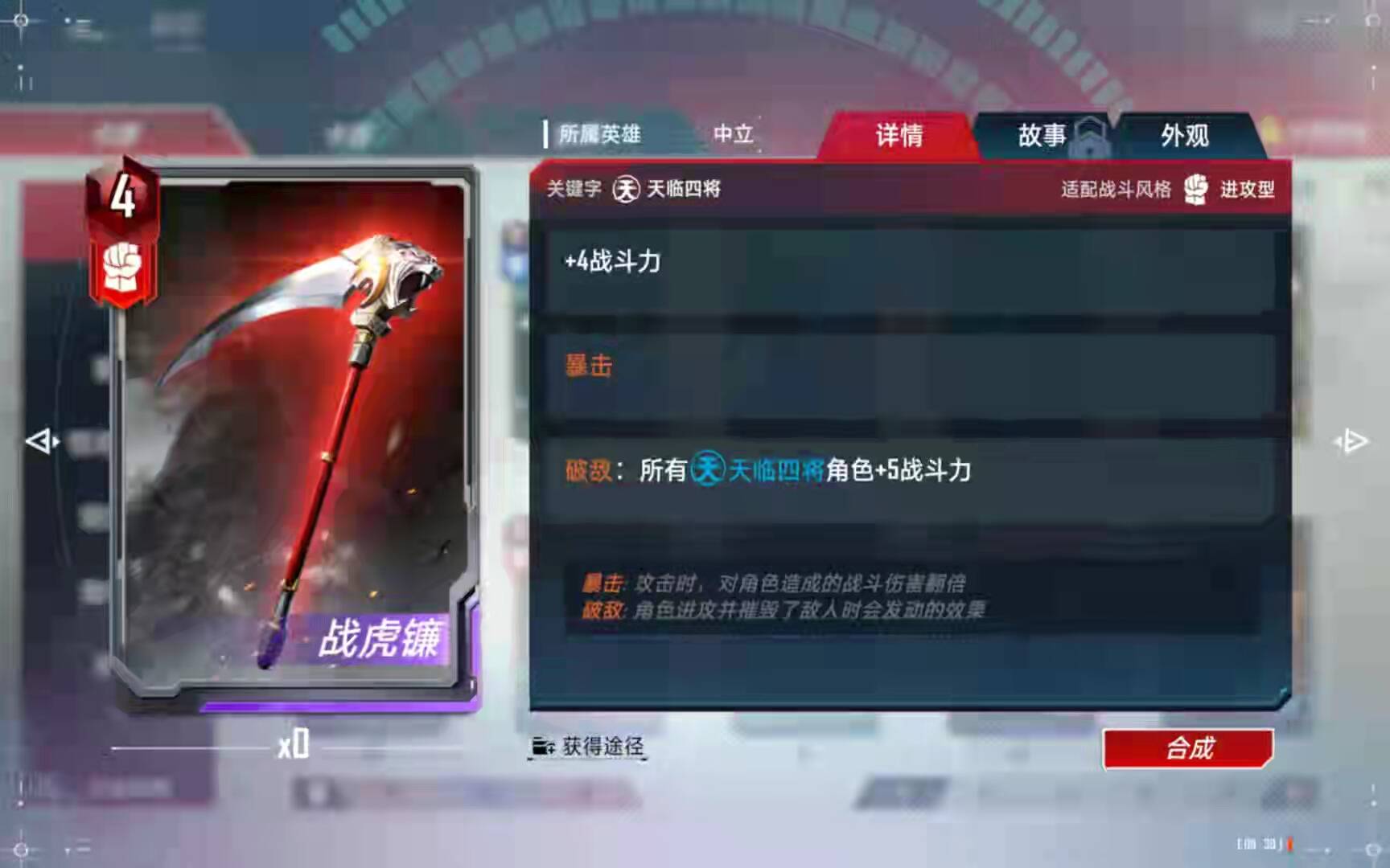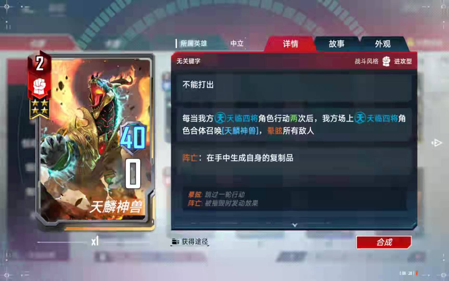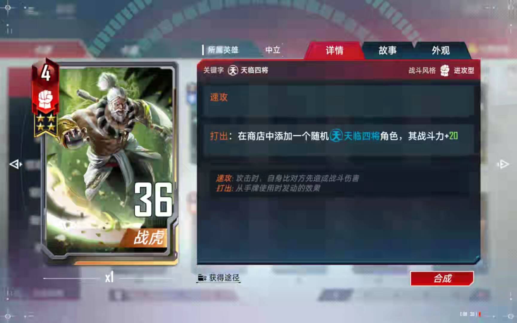 [4]、正义感召优先找合成四星的卡牌,然后找战虎,最后再考虑其他的天空单位,最后再考虑蛛丝。