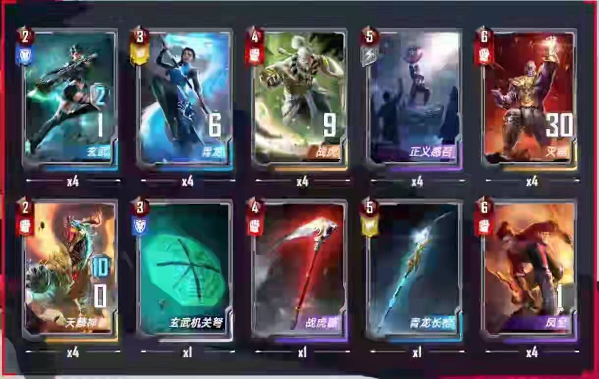 战虎这张卡,尽量带四张,青龙这张卡,强在行动次数+1,这就很牛了,配合四星天麟神兽非常强。