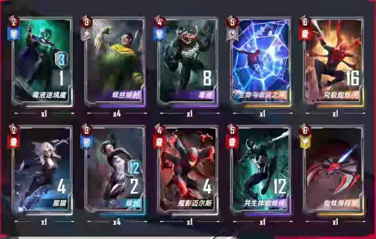 (3)、可以不使用用蛛丝喷射的卡组:蛛丝小蓝队、中期的复仇者阵容;
