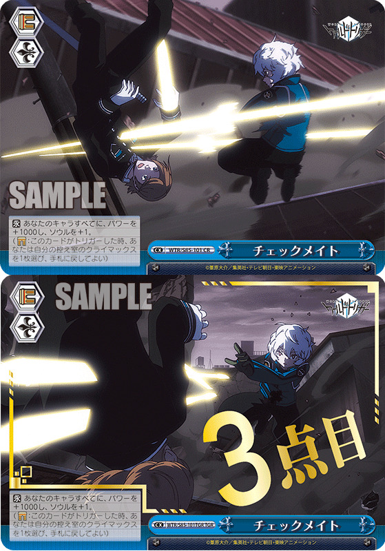 永:CX联动:己方的CLIMAX区里有“チェックメイト”的话,这张卡的战力+4000,这张卡获得以下能力。“自:这张卡的战斗对手倒置时,你可以对对手造成1伤害。”(会发生伤害取消)