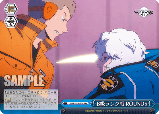 自:CX联动:这张卡攻击时,CLIMAX区里有“B級ランク戦ROUND5”,且其他的己方的《トリオン》的角色在4张以上的话,你可以选择1张己方的休息室的角色返回手牌。