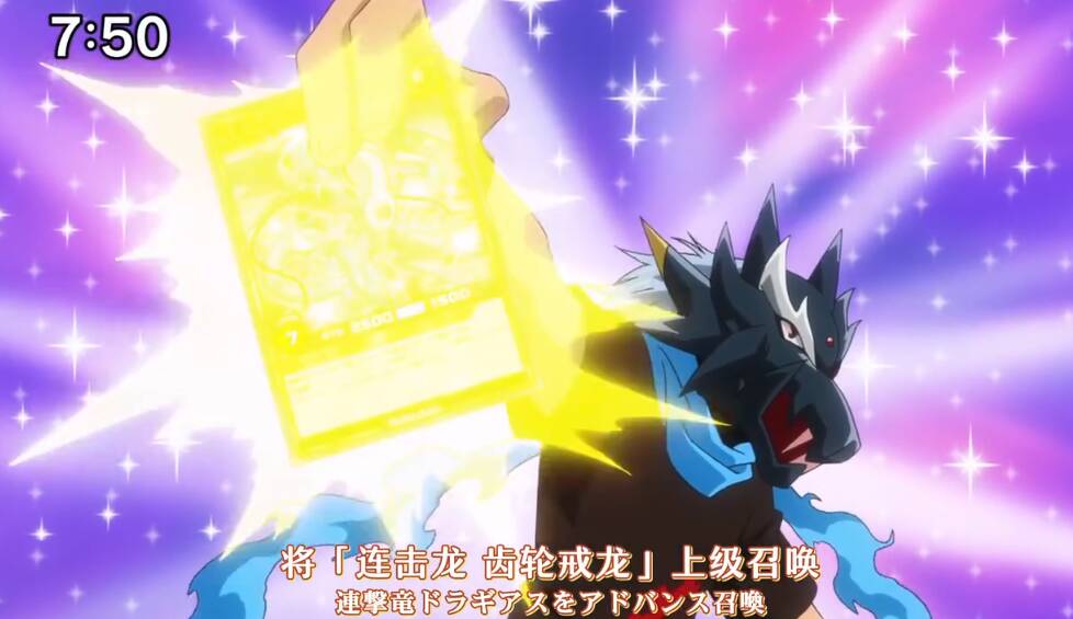 结合召唤---齿车星戒龙F 。发动选择效果这个回合,这张卡的攻击力上升900,可以向怪兽作2次攻击。