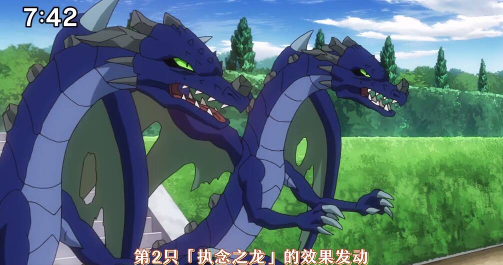 卢克准备用击败姐姐来证明自己可以独当一面,先出2个执念之龙,发效果卡组顶堆1降低巴松神指400攻,发了2次。