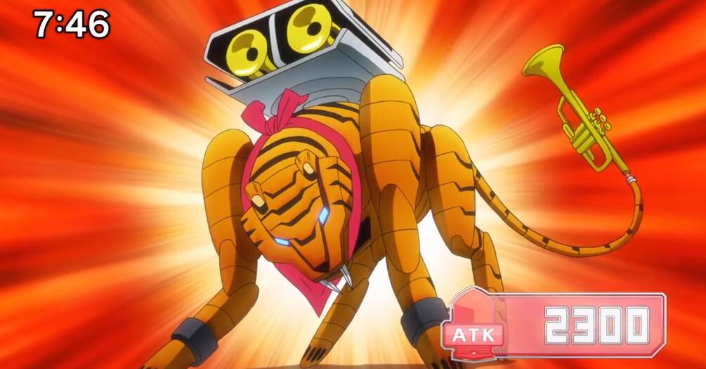 泰迦的回合,出2个下级,上级召唤小号虎,发效果卡组顶堆1,+300攻,特召手牌的巴松神指。并且发动一气贯通和巴松神指的效果,攻击力增加到5200。发动攻击。