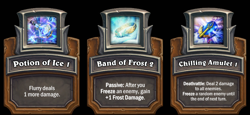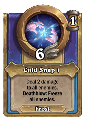 - (1级)亡语:对所有敌人造成2点伤害。随机冻结一个敌人,直到下回合结束。