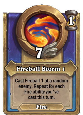 - (1级)随机对一个敌人施放火球术1。在本回合中你每施放过一个火焰技能,重复一次。