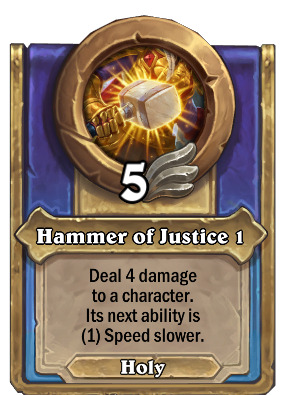 - (2级)对一个敌人造成7点伤害,目标的下一个技能速度值减慢(2)点。