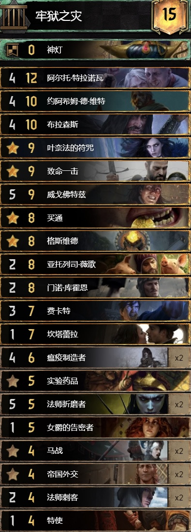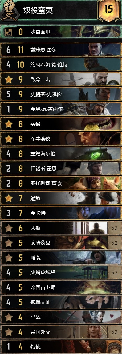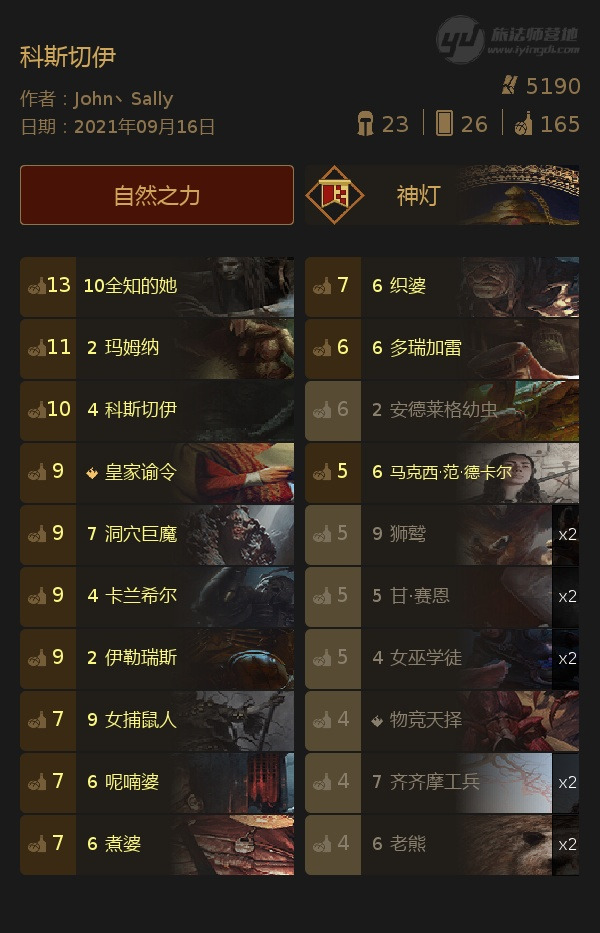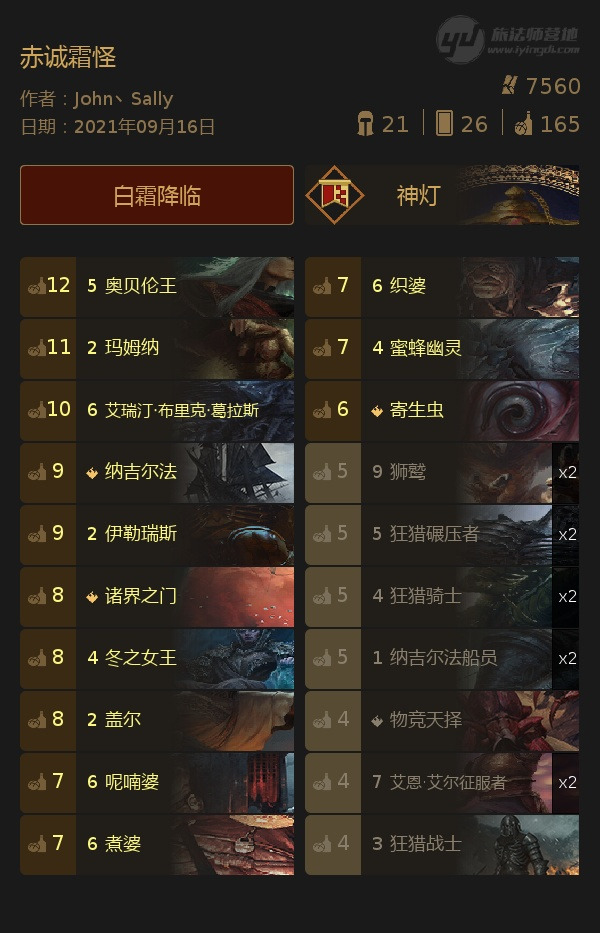 单卡替换:帝国蝎尾师可以换成骨质护符。伊勒瑞斯和洗牌姐可以换成干旱。