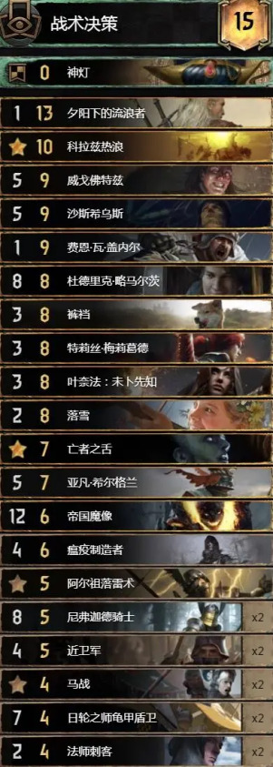 对阵阳寿北方基本看对面抽卡,赢面较大,对阵蓝衣主要看r1手牌是否能处理卫士。