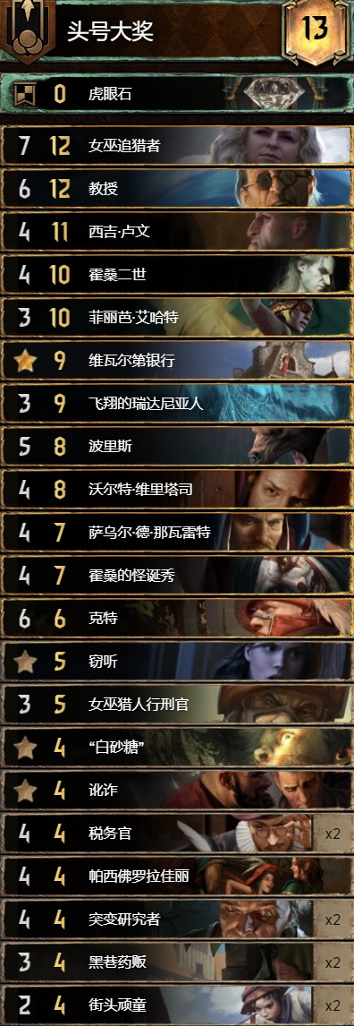 本赛季辛迪加目前天梯的胜率高居第一,但热度却排在倒数第二。究其原因我觉得是辛迪加目前可玩的阵营和选择较少,在上分选择上绝大部分玩家都会选择盆满钵满这个领袖,另外一小部分玩家会选择头号大奖。在强度上,随着群岛的增多,目前天梯环境辛迪加的优势对局还是不少的。所以领袖集中、整活较少是辛迪加目前胜率最高热度却比较低的原因。在构筑的变化上,由于怪兽的削弱,有不少玩家没有携带葛拉登这枚重型武器,而选择携带高效率花钱兼具控制能力的菲丽芭,但由于老奶奶女巫追猎者的存在,赏金体系依然是辛迪加的主流。