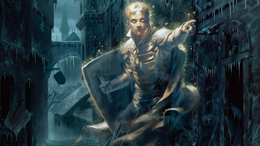艾德琳和护教军带头冲锋,宛如一把神圣铁锤般地坠落在不死生物铁砧上。艾德琳的指令就跟她的刀法一样又快又准。头颅坠地,就像水果从树上落下。一个跳向她的殭尸竟慢速停滞于半空中。随着泰菲力减缓殭尸沿着中列向前推进的速度,他的手杖也拖曳着蓝色的光芒。那并没有很明显-只造成细微的延迟-但那却足以让艾德琳用盾击退殭尸并把剑插进它的**。