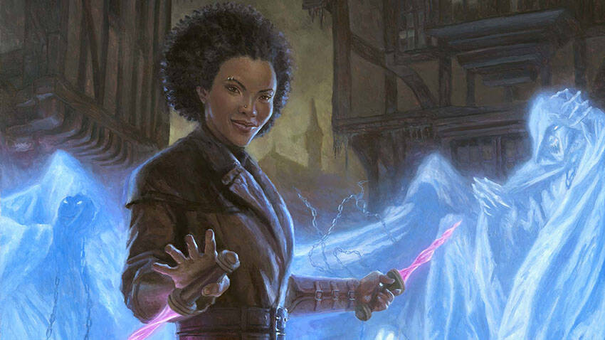 难道艾德琳是从故事里走出来的人吗?没错,她展现了书中的英勇,不过她以全身的重量把门撞成碎片的方式也是。在房里,卡娅漫不经心地靠在其中一个鬼魂附近。她以一个带有嘲讽意味的鞠躬迎接破门而入的众人。
