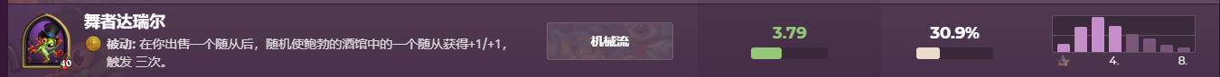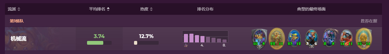 我印象里这是在有战棋大数据之后第一次看到机械排名登顶,自从战棋脱离上古时期钴制卫士那个年代之后,新出的种族往往都有很强的后期成长能力,导致机械一直排在中游,在那些不平衡的版本里机械都是蹲在角落里默默流泪的可怜流派。这个版本到现在一个补丁把不平衡的牌削弱,大家回归到正常强度之后机械成功登顶我觉得离不开新版本的这几张卡,他们是我认为的新版本明星单卡。
