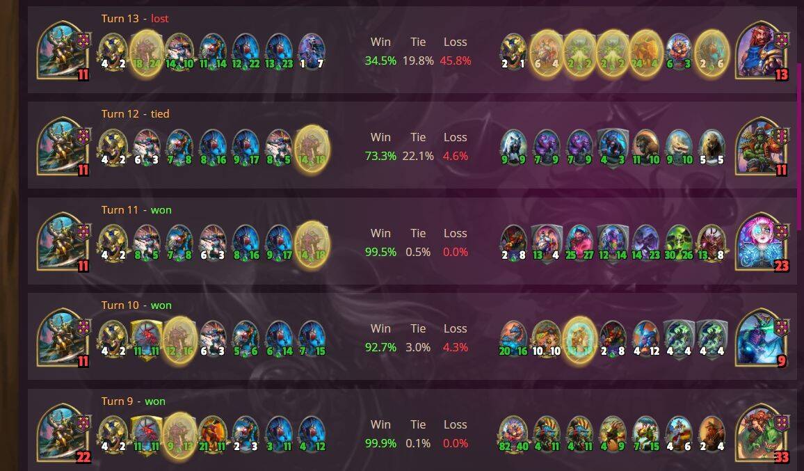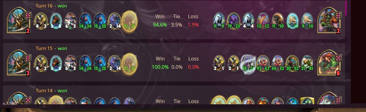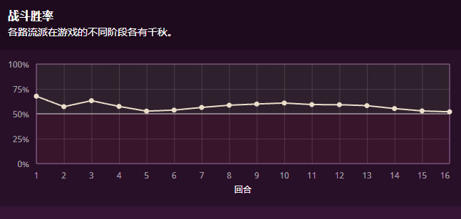 只看这张战斗胜率图,你很难想象这是机械流的战斗曲线,前期顺滑,中期强势,后期还能有一些稳定提升,没有明显的断层(二回合是因为会有概率遇到不上本的所以有波动)