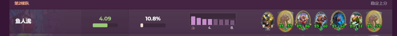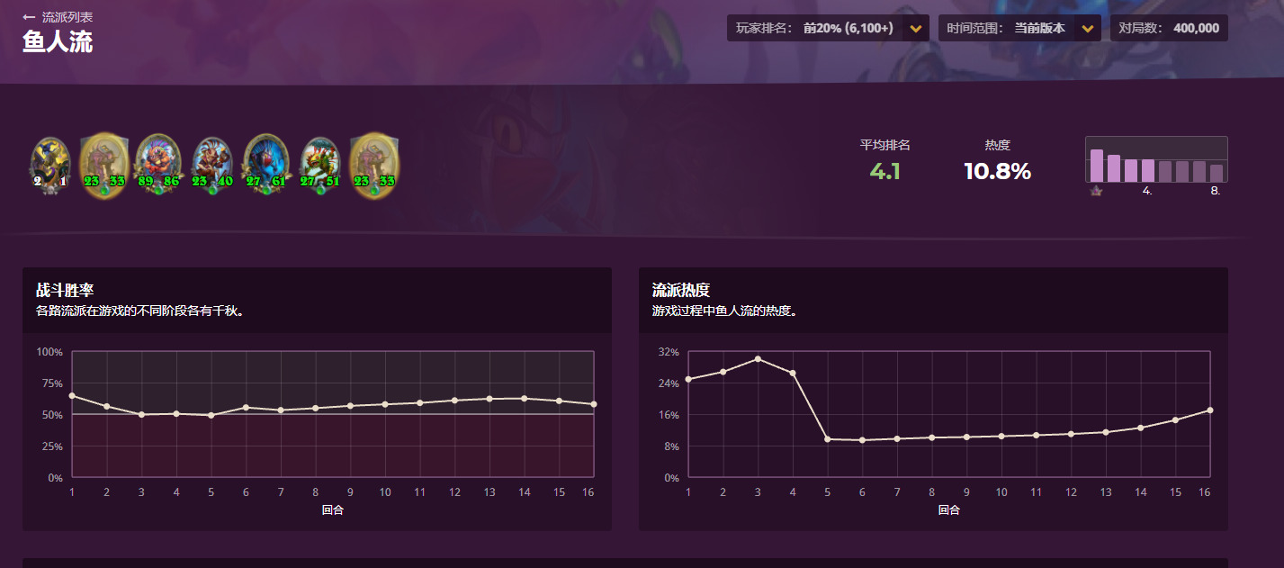 这个版本我心里第二的种族流派一定是鱼人!鱼人真的是上分利器,大数据里鱼人表现也很不错。