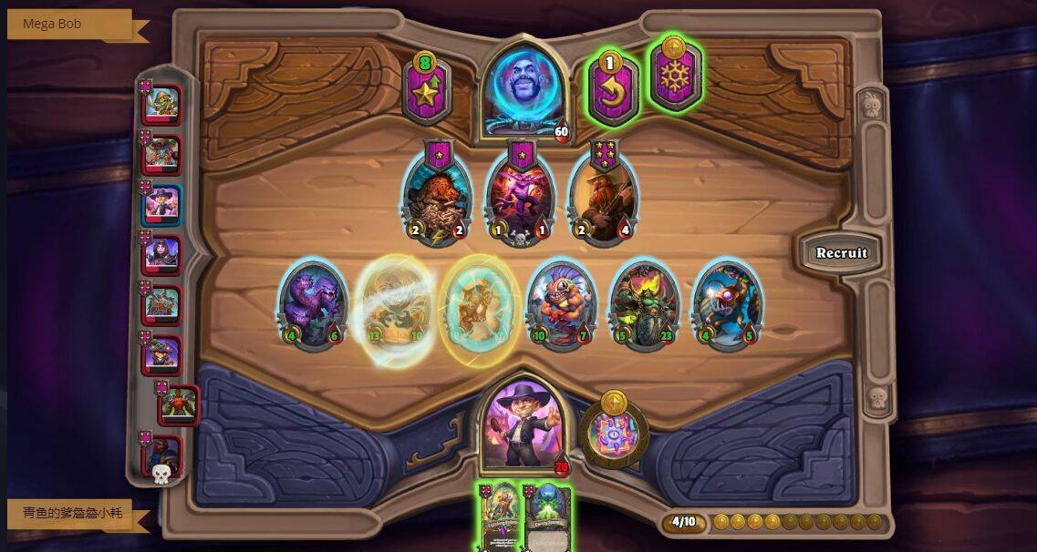 上个不平衡的不耐烦版本其实打到后面就是比拼大家阵容转的怎么样,我分段遇到的对手都是用不耐烦跳上六转型,谁强就是看谁转的阵容完整,站位合理,新娘的直播我看多了之后也学到不少转阵容的方法,比较常见的是用海鲜大厨,发现鱼,铜须转。海鲜大厨既可以选择鲍勃酒馆里的融合,发现鱼变金也能变自己场面上已经有的融合怪,这样你再找到融合怪就不用担心三连数量变少了,在六本有鱼人元素的局,铜须是可以创造无限可能性的。