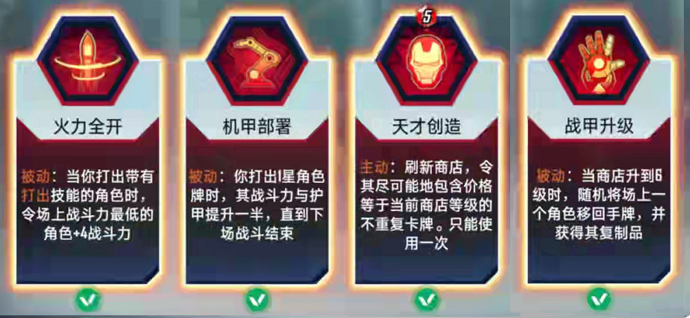 托尼是本游戏重要的经济卡,所以有条件的话,尽量能多带托尼,如果有四张托尼,则一定要给托尼老师升级到四星,这是用钢铁侠辅助的最重大的意义。使用托尼的时候注意以下细节: