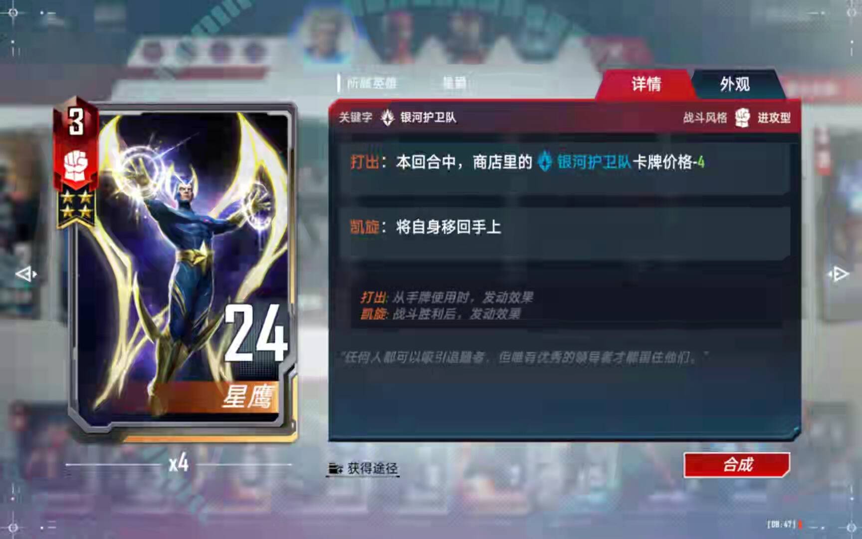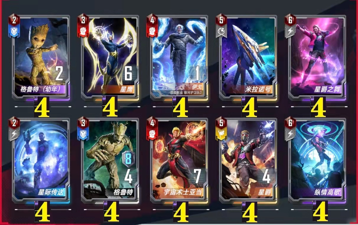 (2)、找亚当、小格鲁特,格鲁特、星鹰等关键卡,尽可能升级到高星。记住关键的两点: